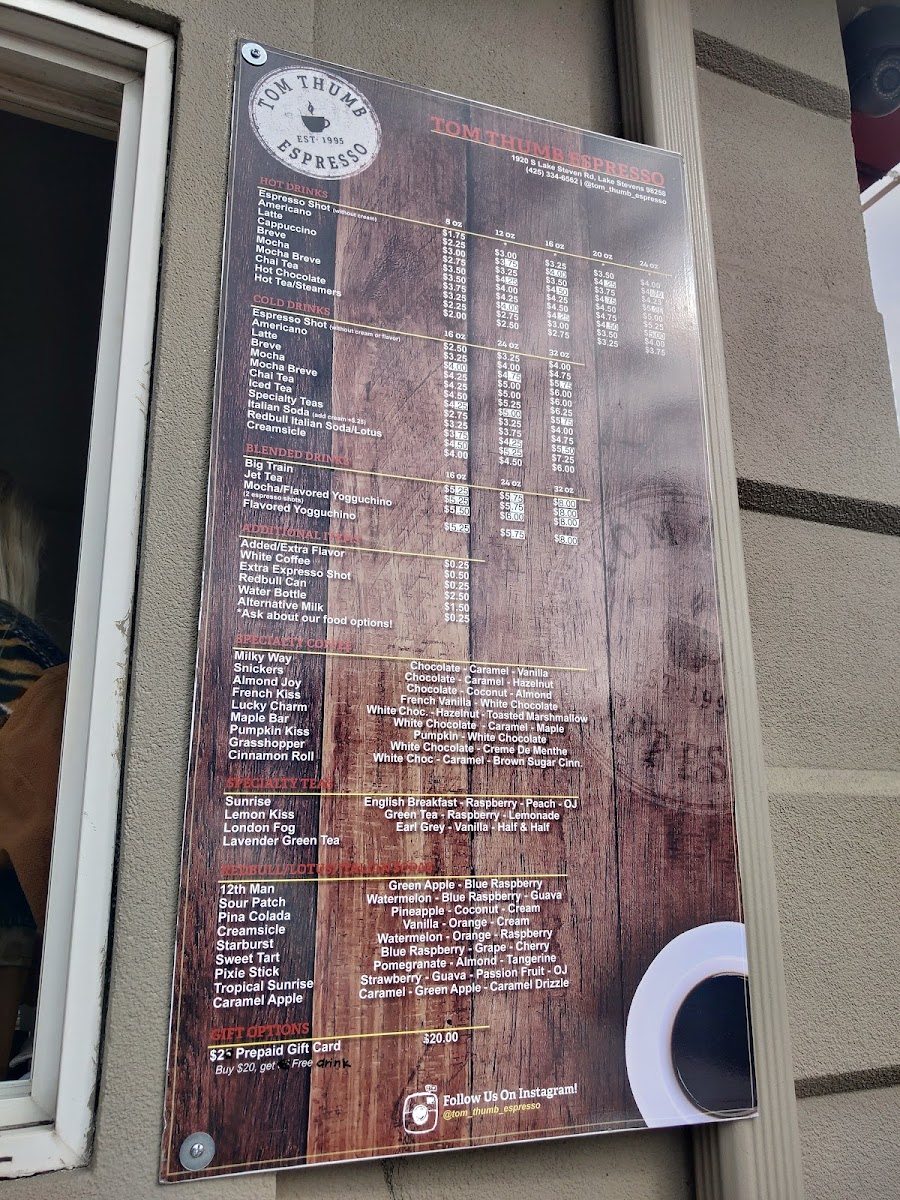 Customer reviews consistently praise the friendly, small-town vibe of Tom Thumb Espresso. Many describe it as their “go-to” spot for a quick pick-me-up, with some even mentioning how the baristas remember their names and preferred drinks. This personalized service helps set the shop apart from larger, chain coffee establishments, creating an inviting atmosphere that keeps customers coming back.